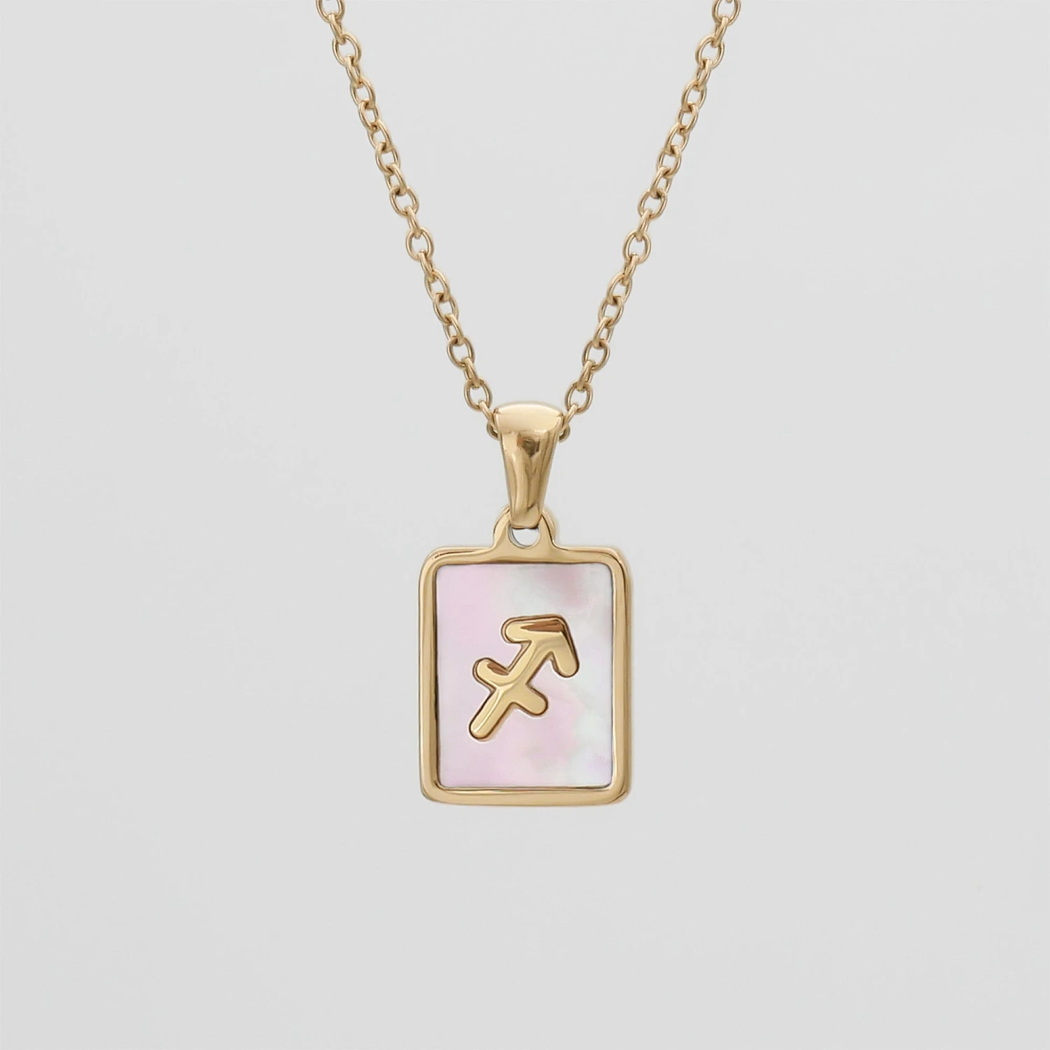 Looking for a unique and stylish way to show off your astrological sign? Look no further than this gorgeous 18k gold plated zodiac pendant necklace! The pendant is set in pearlescent pink base, and is tarnish–free, so you can wear it with confidence knowing it will always look its best.