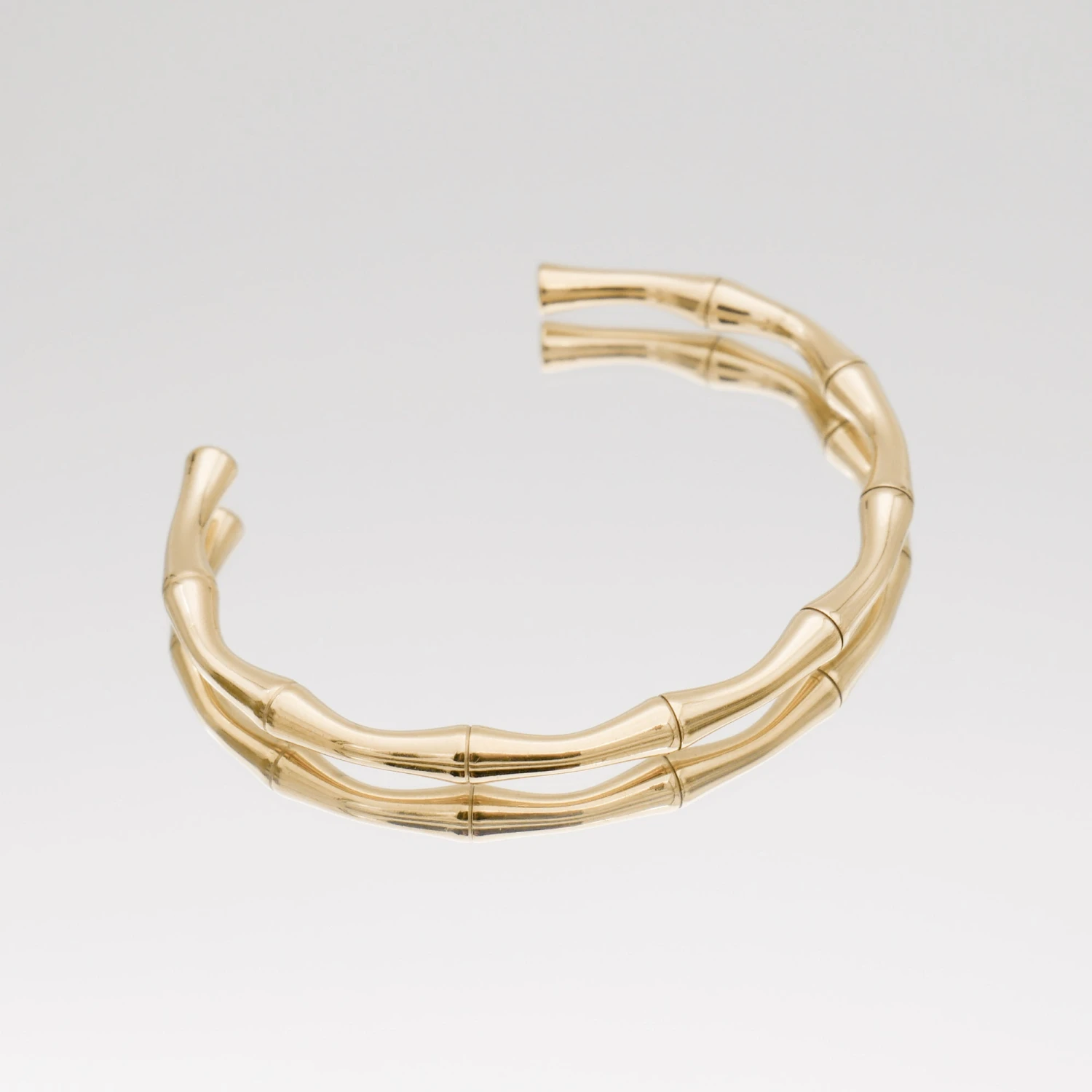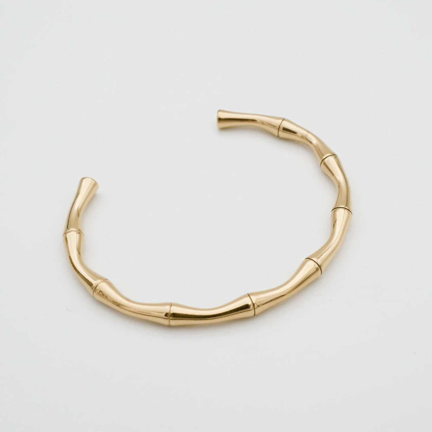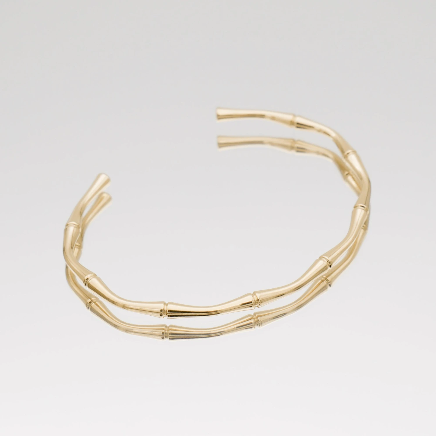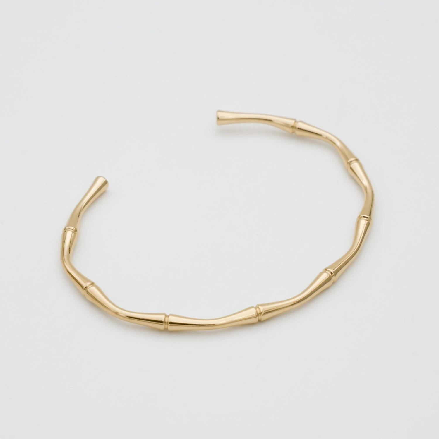 Our Rei Bamboo Bracelet features a unique, adjustable bamboo-inspired design. The bangle is available in 3mm and 5mm sizes and finished with gold-tone accents. Perfect for any occasion, this bracelet is sure to be a classic.