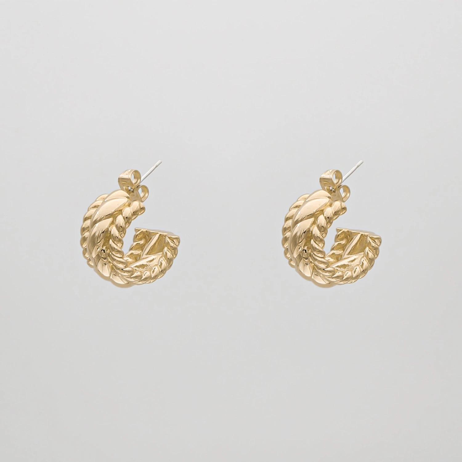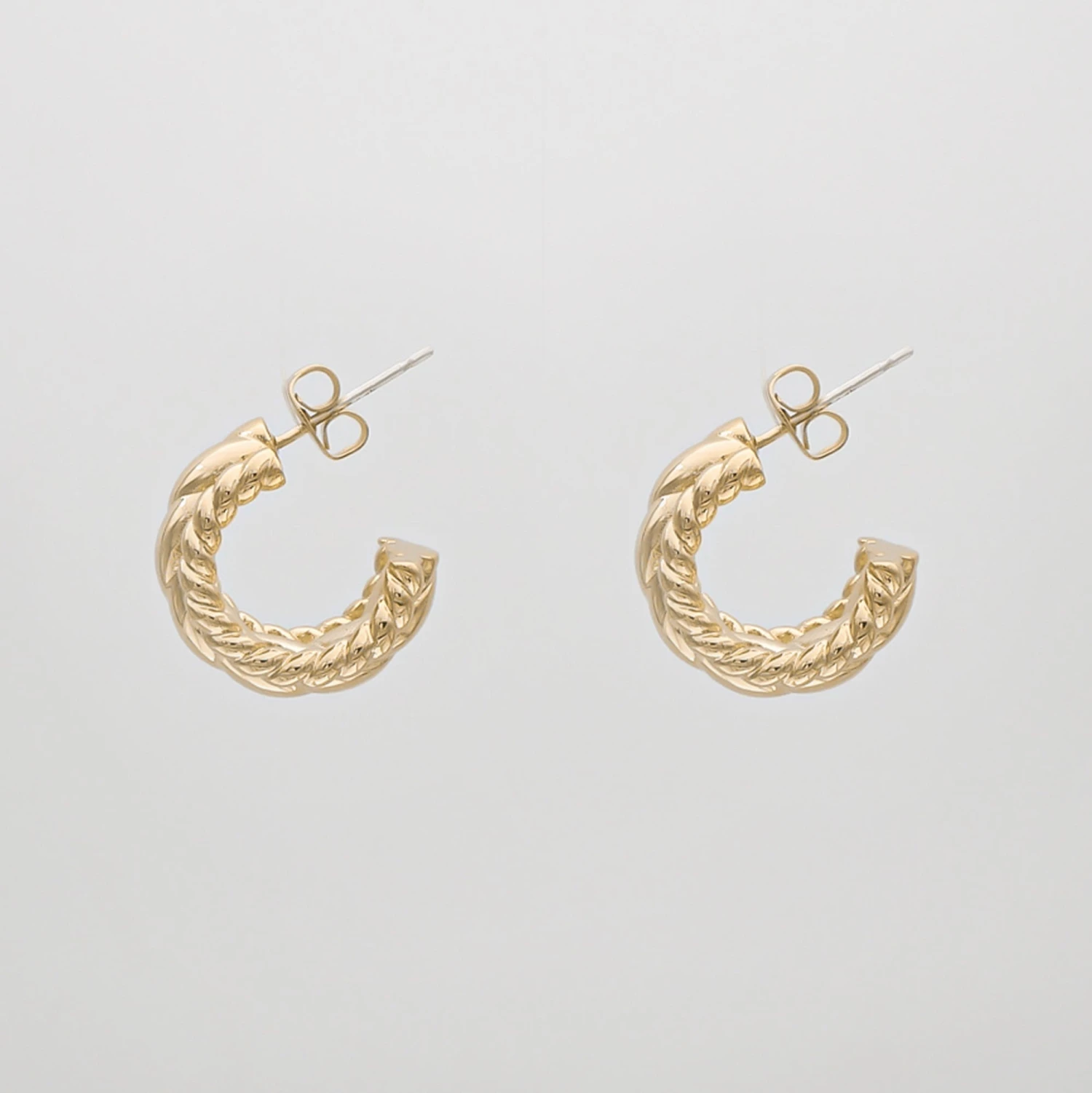 The captivating Remi Earrings are a beautiful twist on the timeless classic hoop earrings and the size makes them perfect for everyday wear. Featuring a braided design to compliment your ensemble and secured with a butterfly closure. Pair with your favourite pendant chain necklace and stacking rings to complete your look.