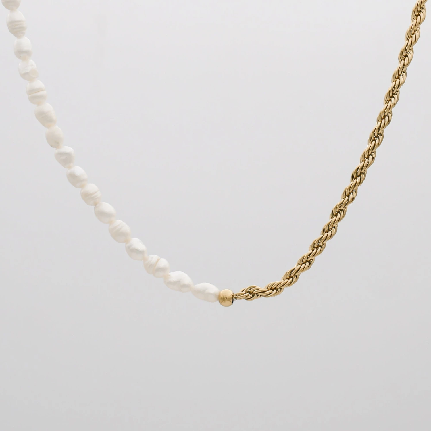 Our Rope & Pearl Contrast Necklace will add character and beauty to any look. This on trend necklace is the perfect staple piece for everyday wear with a touch of pearlescent shimmer.