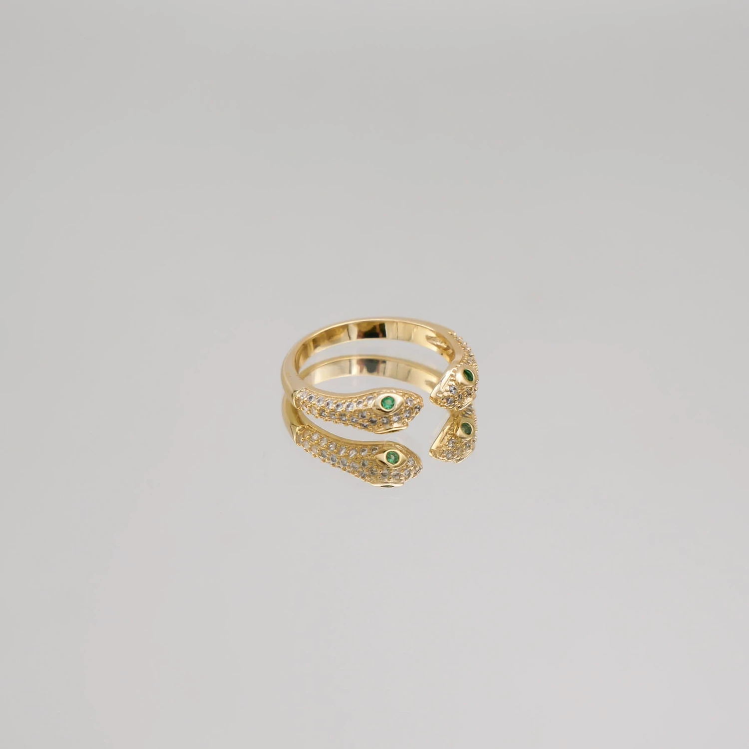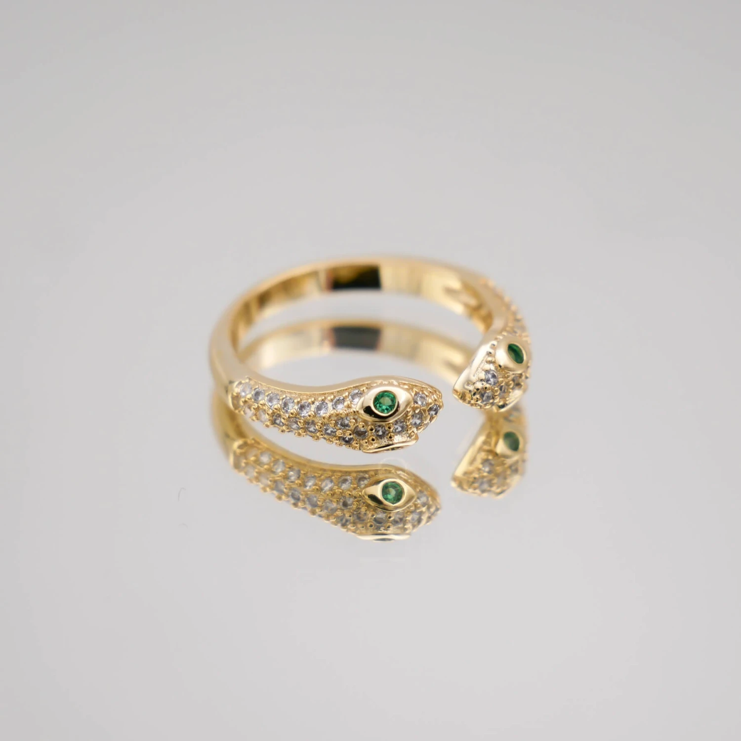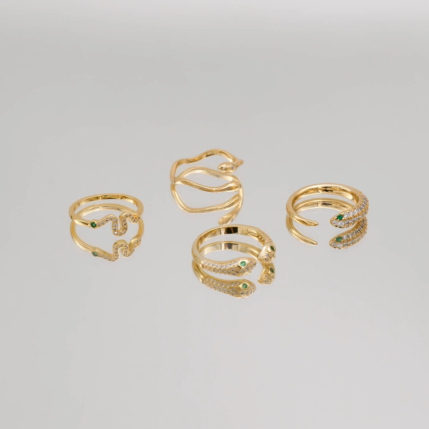 The Sadie Snake ring features intricate details, creating the perfect balance of sophistication and style. Its adjustable design allows you to wear the ring on any finger or stack it with other rings and watch it glisten.