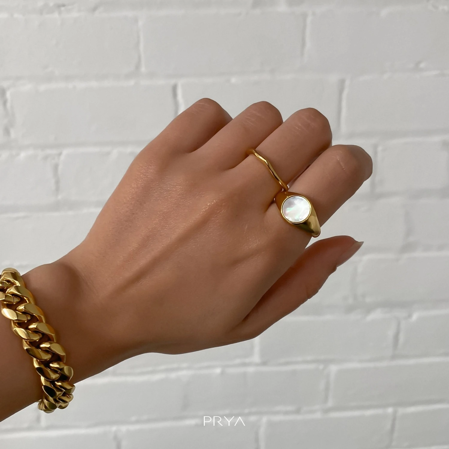 Our Samaria Opal signet Ring features a beautiful opal stone set in 18k gold plated stainless steel. This is a beautiful addition to any jewellery collection.