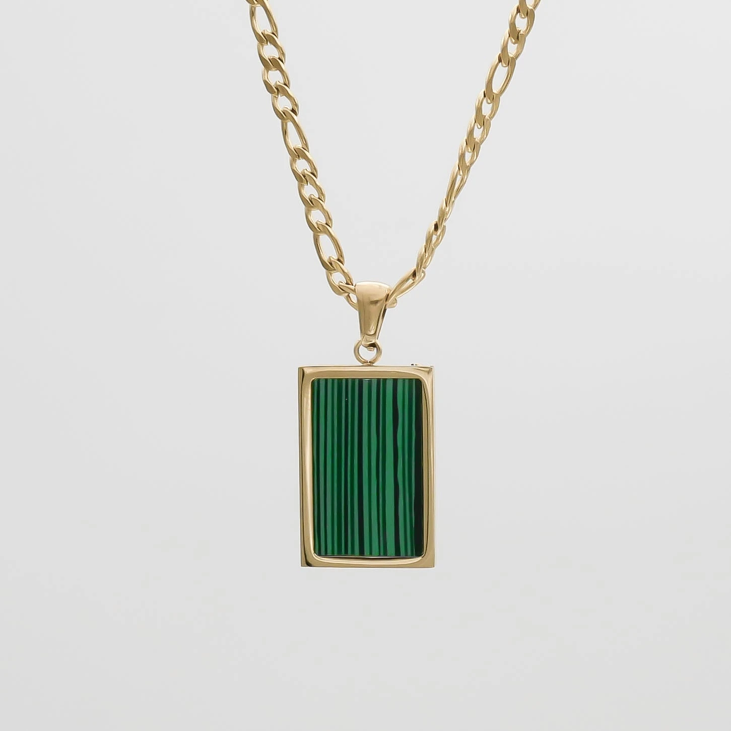 An exquisite and elegant piece, our Saraya Emerald Tablet necklace features a beautifully crafted emerald stone, suspended onto a Figaro link chain. This gorgeous necklace will make a statement on its own or pair with a simple choker for a mesmerising look.