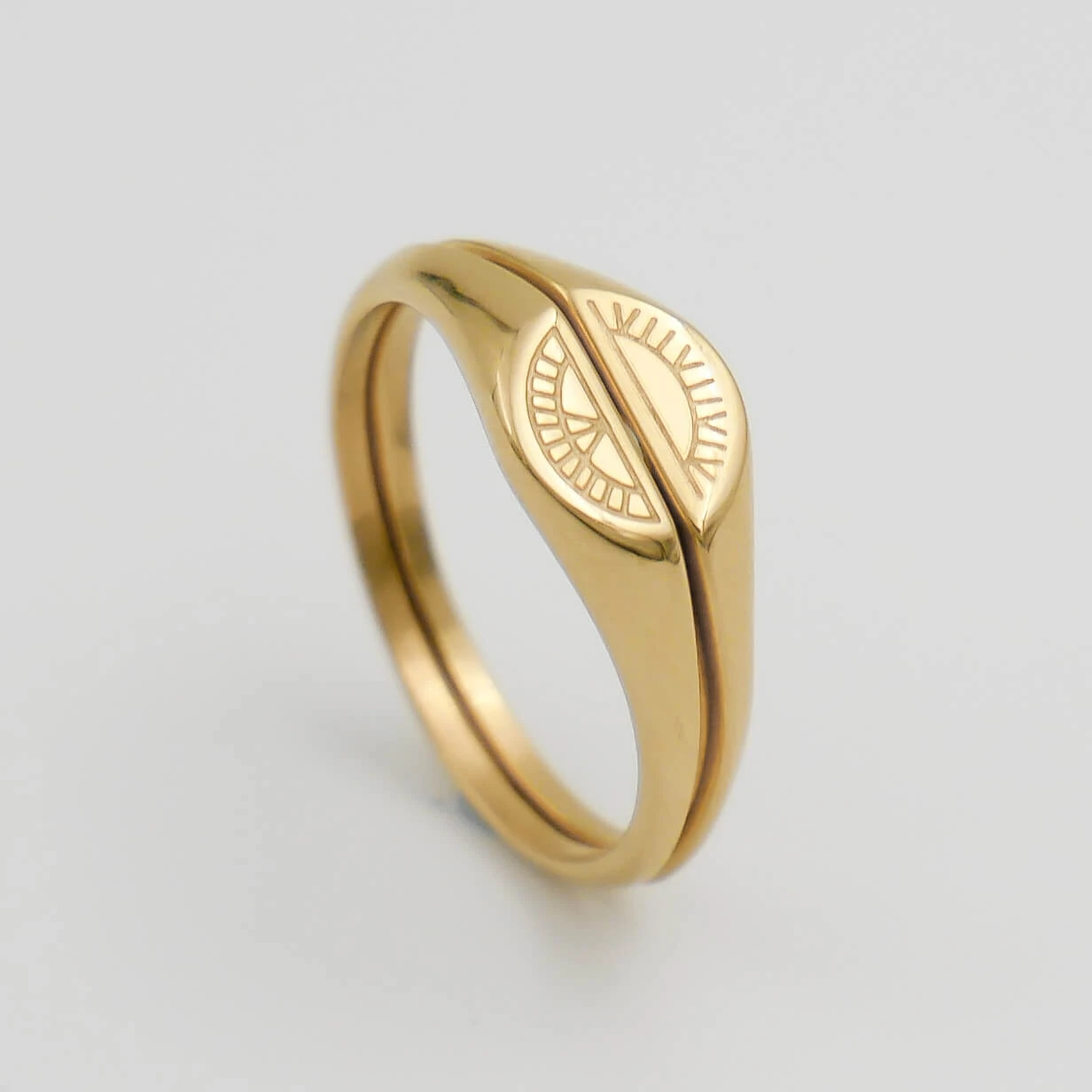 Delicate, minimalist half circle rings, the elegant Skyla ring can be worn in multiple ways: Wear together to form a split circle signet ring of the sun and moon, wear separately on different fingers to form the ‘yin and yang’ of day and night or even gift one half to a friend to embrace your friendship.