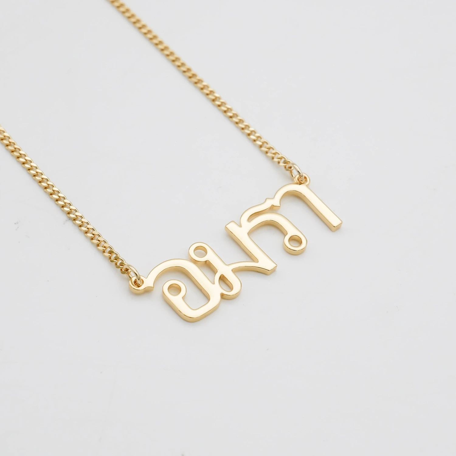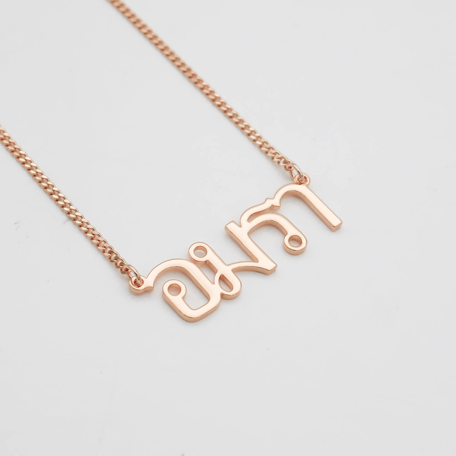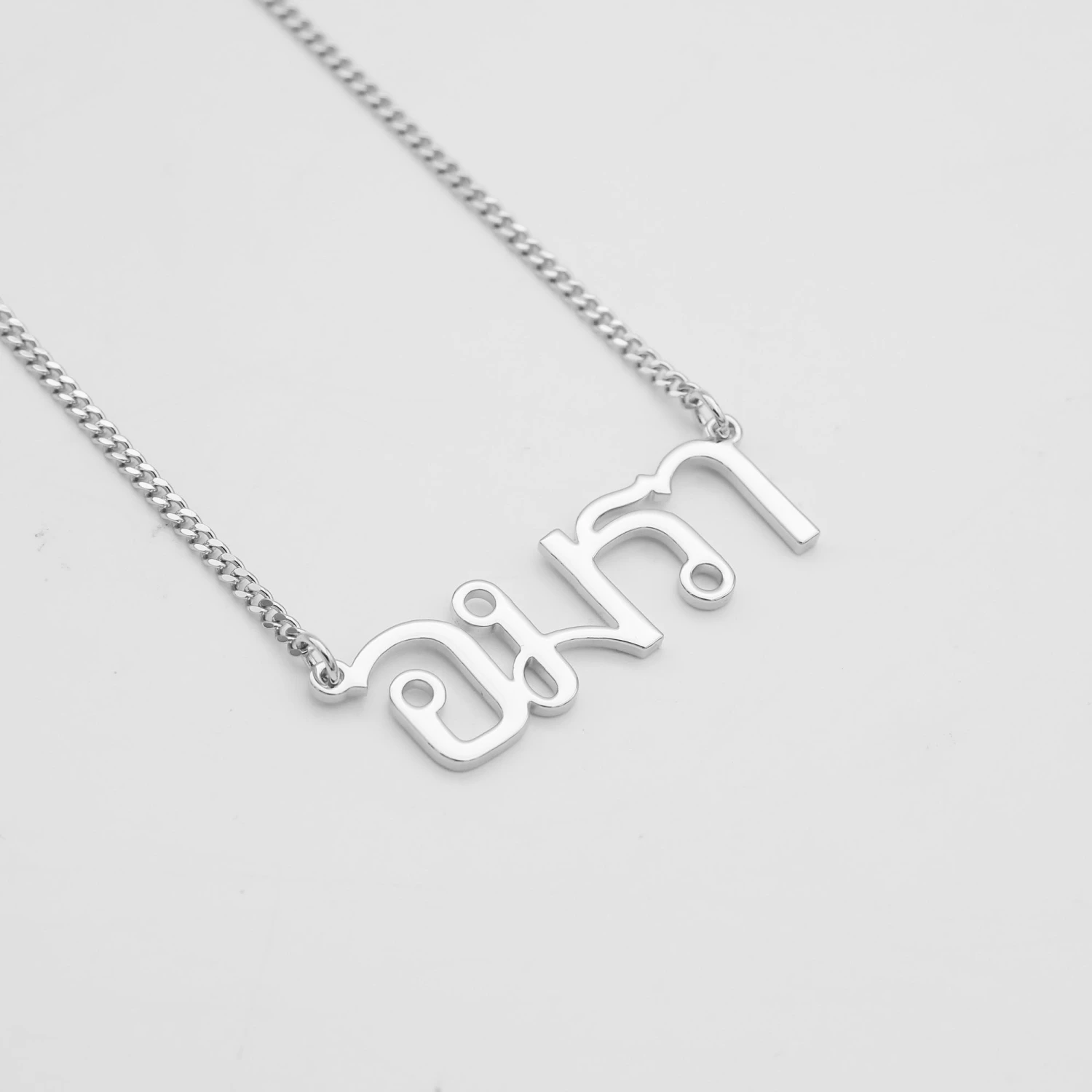 Introducing the PRYA Thai custom name necklace – a stunning piece of jewellery that beautifully represents Thai culture and heritage. Handcrafted with precision and care, this necklace is a perfect way to celebrate your love for Thailand or honour someone special with a Thai name or word. Made with high-quality materials, this necklace is a must-have accessory for anyone who appreciates Thai culture. Wear it as a meaningful statement piece or layer it with other jewellery for a personalised look that’s uniquely yours. Order now and embrace the beauty and elegance of PRYA’s Thai custom name necklace.