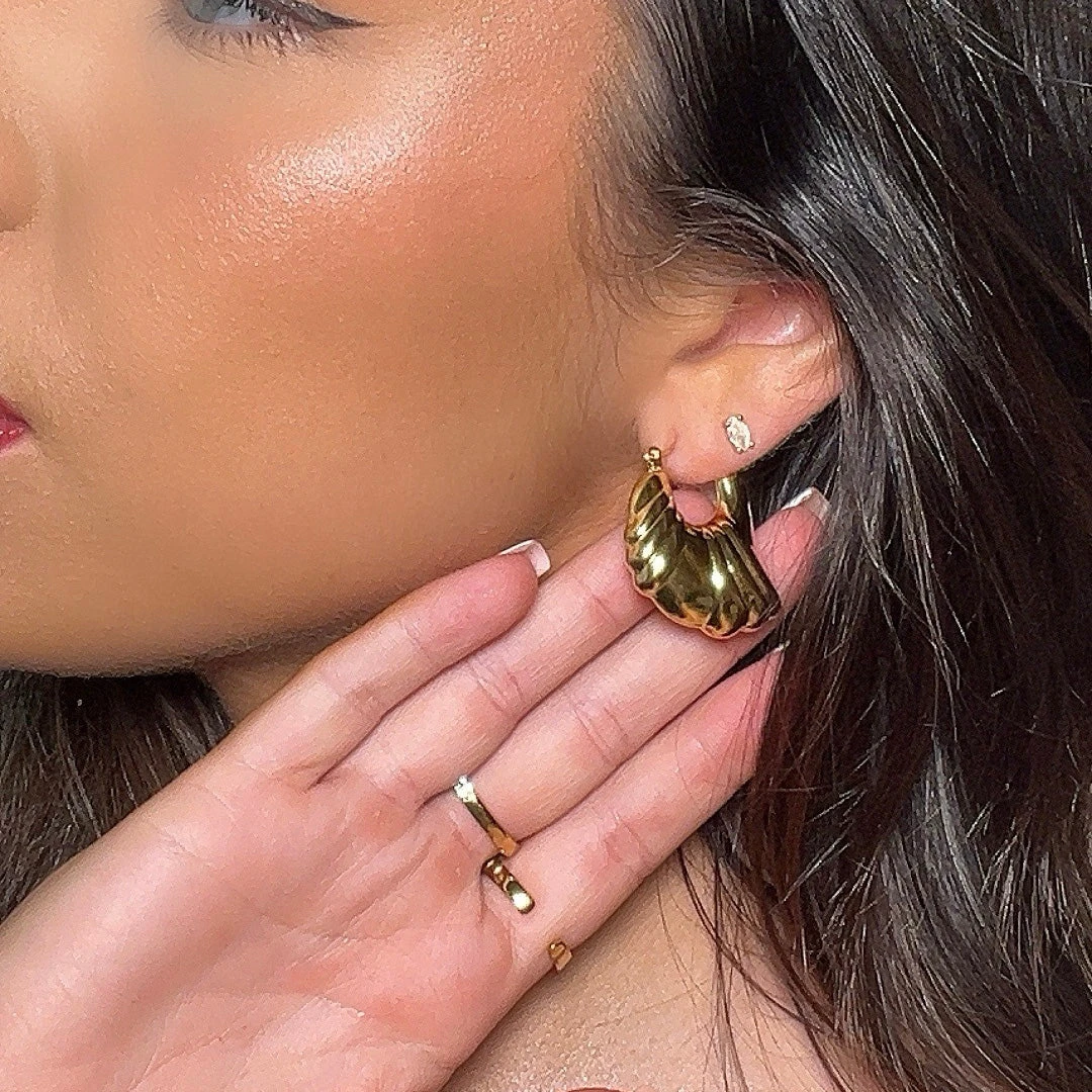 Elevate your style with our Yara Earrings. These ribbed, asymmetric hoops make a beautiful statement, while their abstract design adds a touch of uniqueness. Choose from 18k gold plating or silver for a luxurious finish. These are more than just earrings, they’re a show-stopping statement.