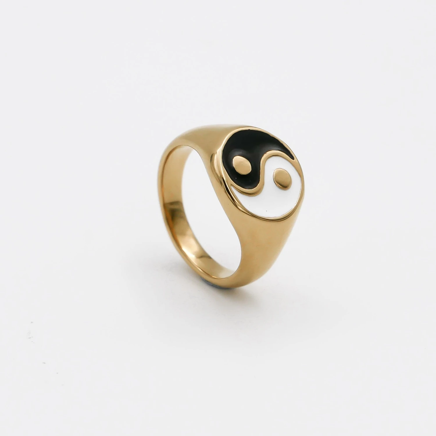 Feel the cosmic power with our iconic and timeless yin yang ring. A reminder that life is about balance. Designed to symbolise equilibrity and serenity, this piece makes the perfect gift for a loved one, or a versatile addition to your own everyday jewellery line-up. Pair it with our starlight signet ring for a contemporary approach or add a pop of colour and pair with our Daisy, Tulip or Four leaf clover signet rings