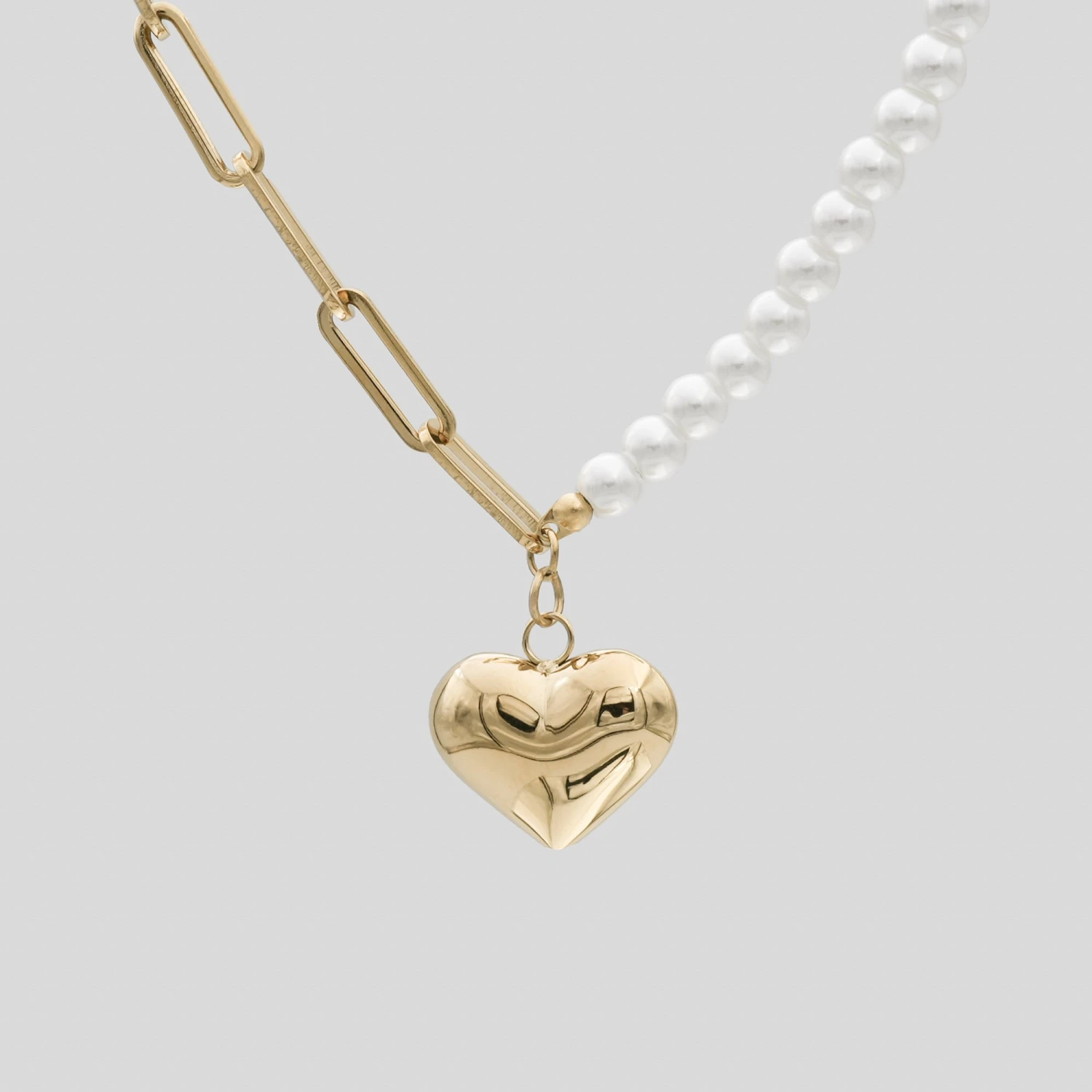 A modern twist on the classic pearl necklace. Combing pearls and paperclip links, this necklace is a must-have. Featuring a love heart pendant at the centre piece of the necklace. Perfect for any occasion, our Zena necklace is the sweetest addition to your jewellery collection. Making the perfect gift for yourself or someone special.