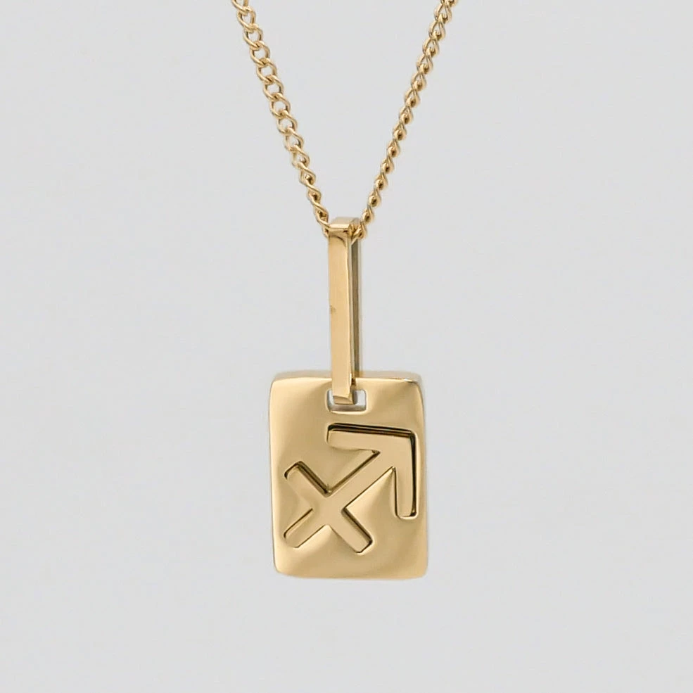 Your next PRYA purchase is written in the stars. Our Zodiac symbol necklace is completely personal and crafted to be your daily lucky charm. Featuring a mini curb chain and engraved into a square pendant, each zodiac pendant is delicate and lets you express your identity so wear it with pride.